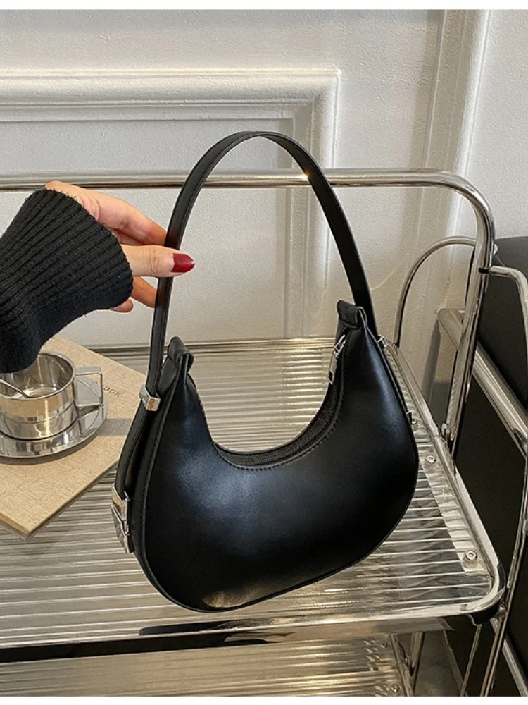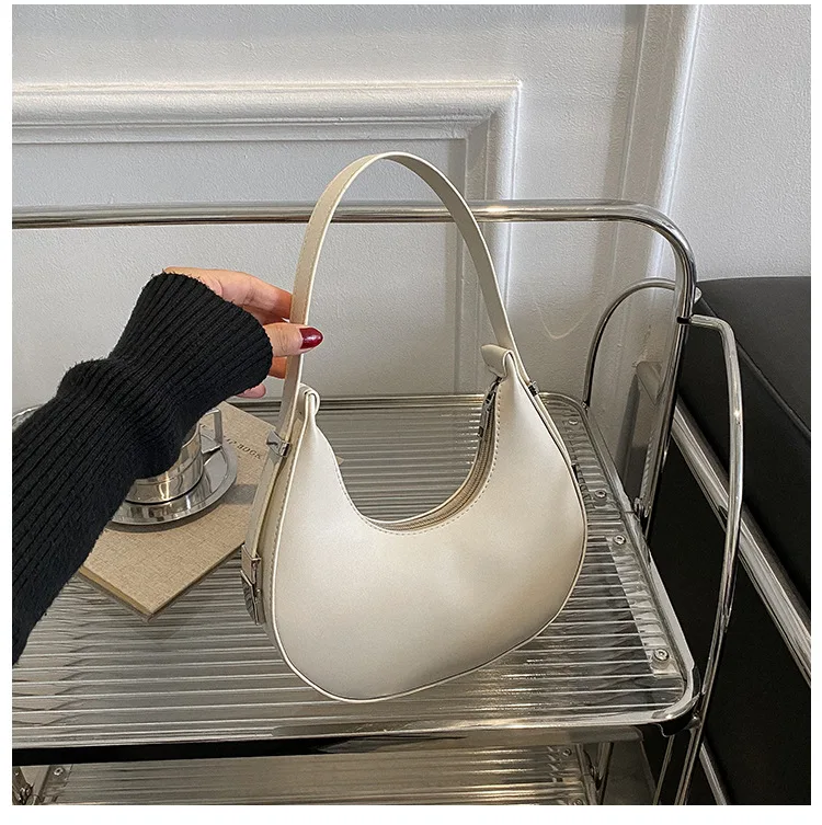 Underarm Bag New Tide Solid Color Casual Texture Fashion One Shoulder French Niche Crescent Shape
